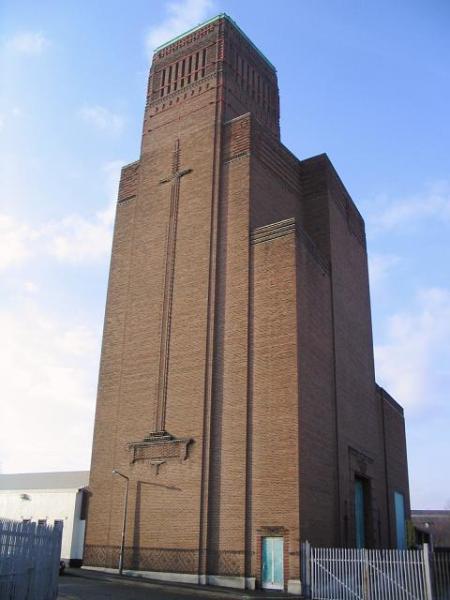 It has friends, too. On the south side of the Mersey in Birkenhead there are three more air shafts for the Queensway Tunnel, also by Rowse, and also Grade II listed. While the northern shaft is finished in gleaming Portland stone, the ones in Birkenhead are plain brick, and enhanced with bands of chevron and scallop decoration (says the listing – see the stuff I learn writing this blog). I can’t quite decide which of the four I like best. The northern shaft is like one of those three-dimensional folded paper greeting cards, and is almost blinding on a sunny day. The southern ones go even more unnoticed than the northern one, but I like the warmth of the brick and the massing of the blocks on the shaft at Taylor Street.