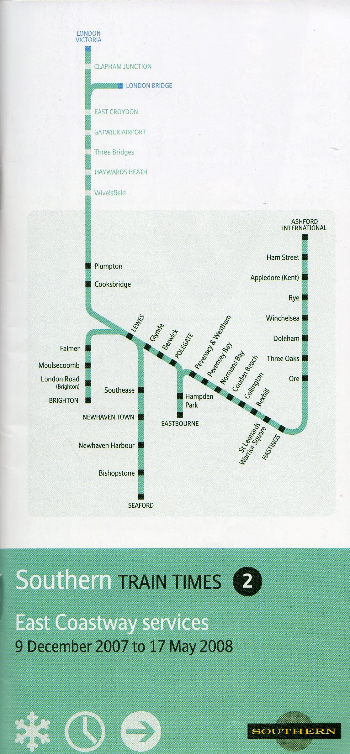 The inclusion of the pictures doesn’t detract from the basic information that each timetable is getting across (which stations/routes are covered inside) which shows that timetables don’t have to be as plain as the ones at the beginning of this entry in order to convey their scope effectively.