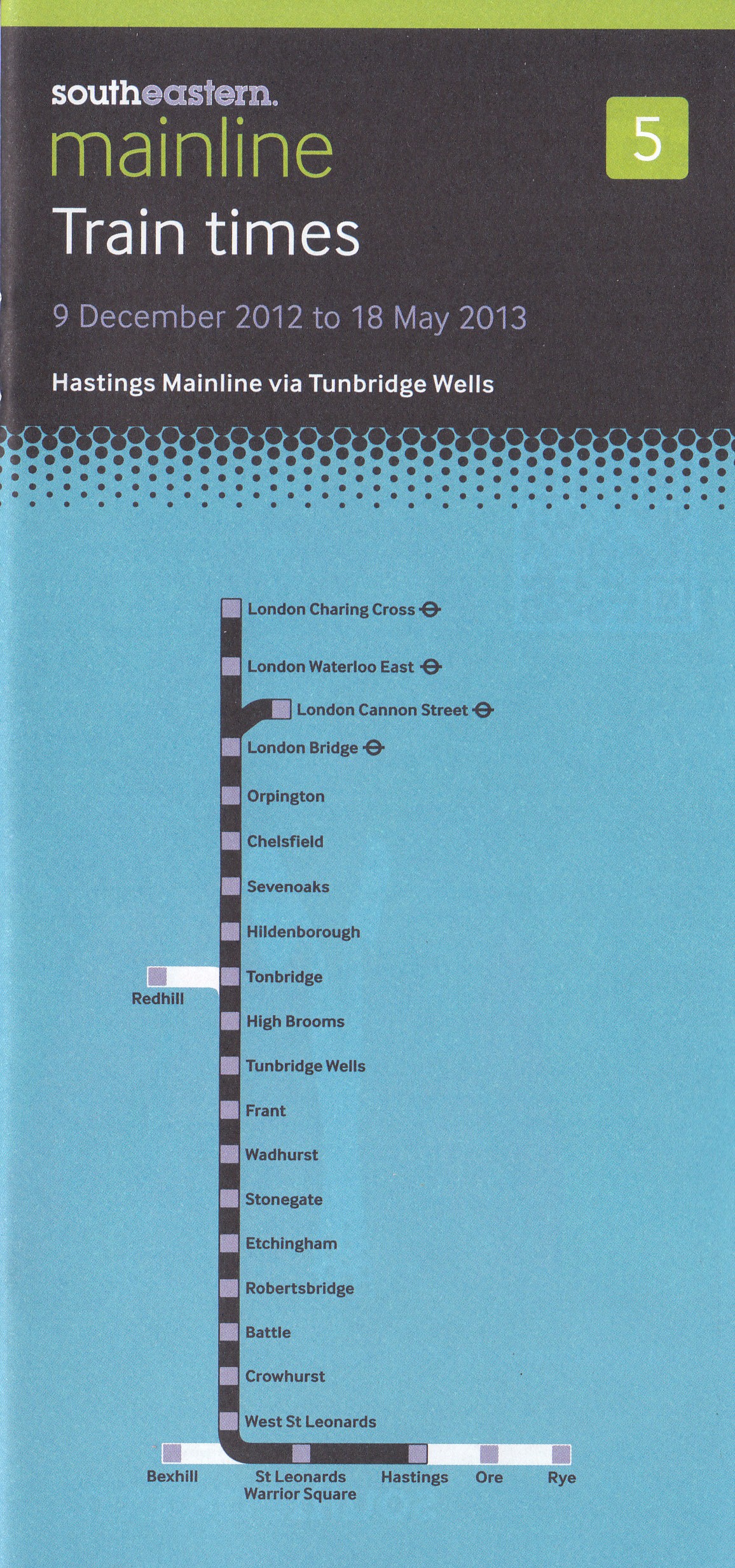 As with the Southern Railway timetable it shows the route, stations, and validity just fine, but as with Stagecoach’s bus timetable it’s not really going to attract attention or interest from people who aren’t actively seeking it. Nevertheless, it has to be said that it’s considerably better than the same company’s output a couple of years back, when timetables featured this minimalist cover: