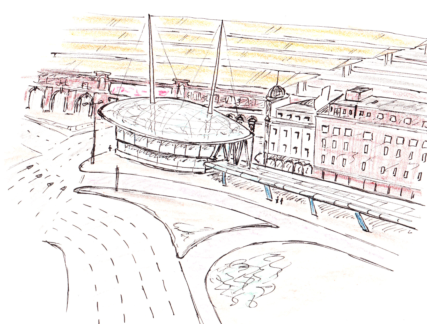 OK, so I think we can agree that I won’t be troubling a computer-aided architectural graphics package any time soon. The Pod was intended to be somewhat more elegant than I’ve managed to show it, and if Rolfe Judd think I’ve misrepresented their design I’ll be only too happy to replace the above with one of their actual visualisations if they’d like to send me one. What even my very rough sketch demonstrates though, is the sheer incongruity and drama the Pod would have brought to Vauxhall station. It would have been great fun, but it wasn’t to be.