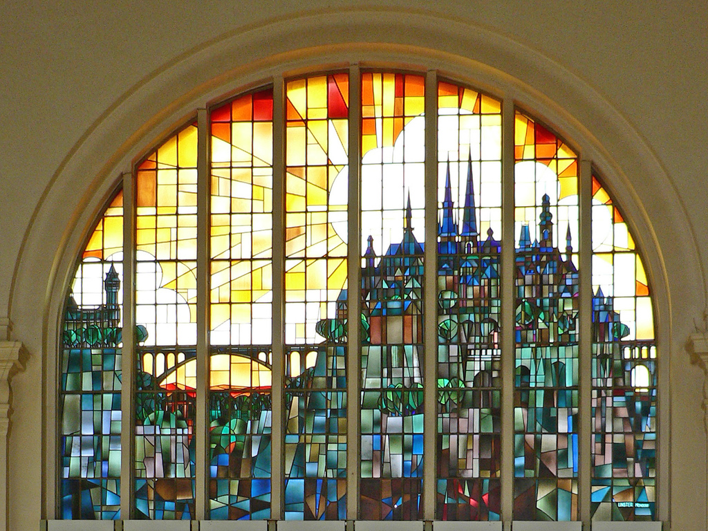As public buildings, it’s little surprise to find that many railway stations host decorative stained glass features. In the golden age of the railways, these spoke of the wealth and power of the railways in their prime. Even as the railways faced increasing competition from road and air transport, stained glass panels have still been installed. Sometimes they are commemorative of the local area in which the railway operates. Sometimes they celebrate the railway itself, and sometimes they are there simply as art, with no purpose other than to bring a brief moment of beauty to the lives of passing travellers.