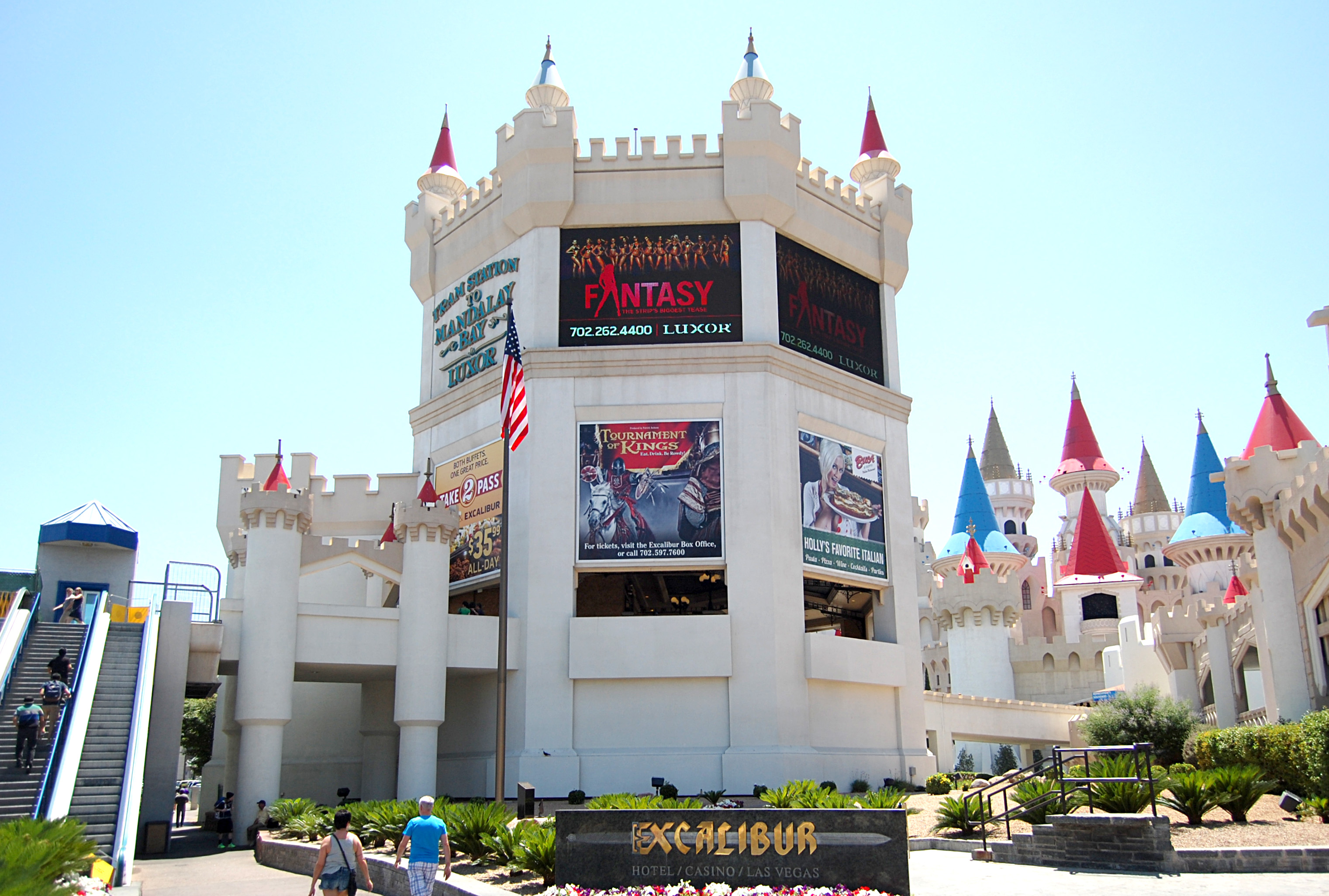 One stop southwards down the line, and it’s Excalibur Hotel. This is a smaller station: