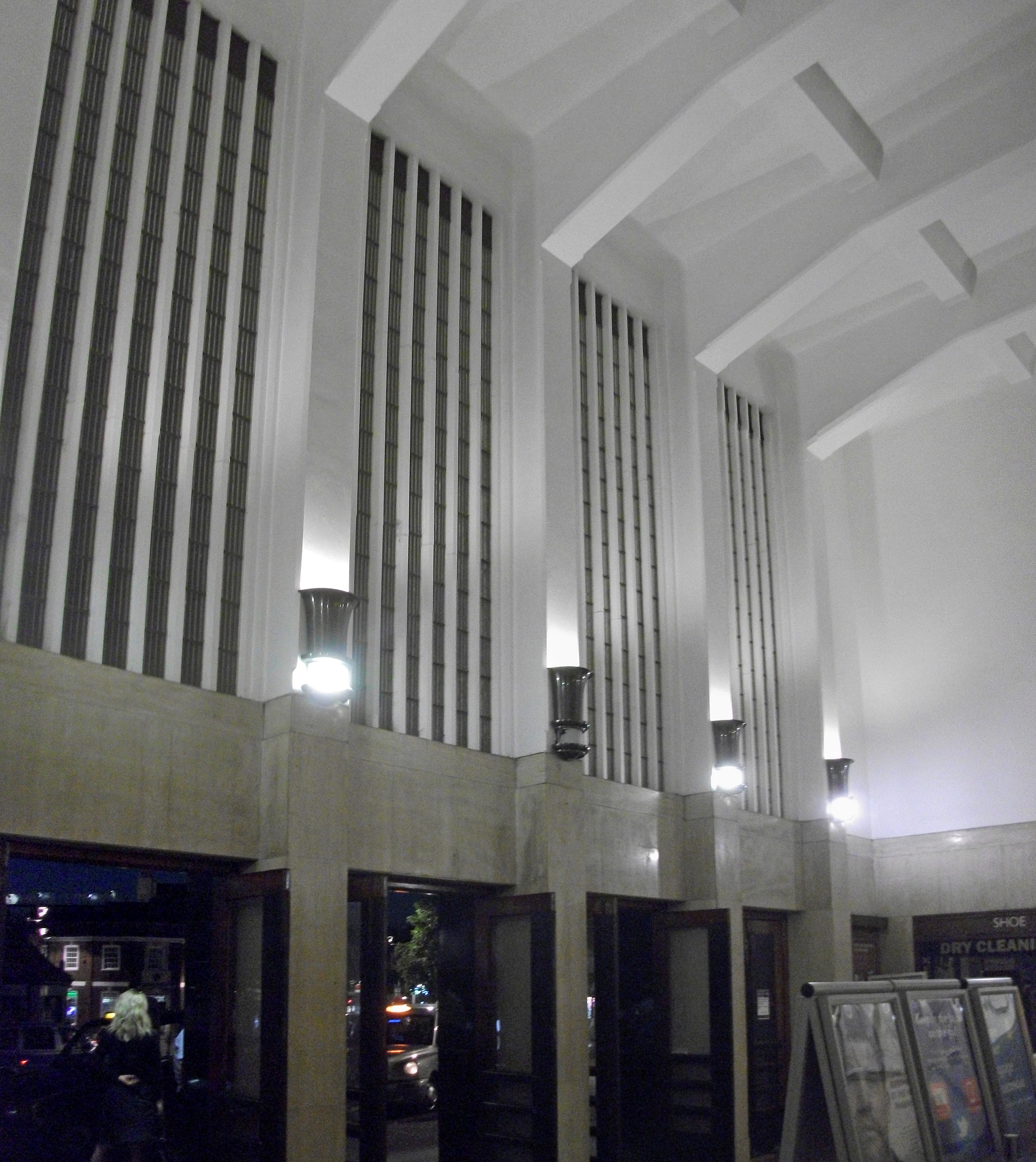 The platform buildings contain waiting rooms/cafes (as seen in the movie Harry Potter and the Half Blood Prince), offices and toilets, and are round-ended streamline buildings of considerable style. On a London Underground station of the 1930s, they would be complemented overhead by a curved concrete canopy cantilevered out from the building itself. Yet at Surbiton, the platform buildings sit underneath utterly conventional railway station canopies, all fussy girders and wooden valances, with supporting legs needlessly cluttering up the platforms and presenting obstacles to passengers on the platforms (not to mention drainpipes which sometime leak spectacularly in heavy rain). This many years on, it’s hard to work out what happened to cause this uncomfortable collision between traditional railway station design and Modernist architecture. Did the budget not stretch to the final component that would have made the station a complete Modernist work? Did the Board of the Southern Railway take fright at the design and insist on the retention of traditional railway station canopies?
