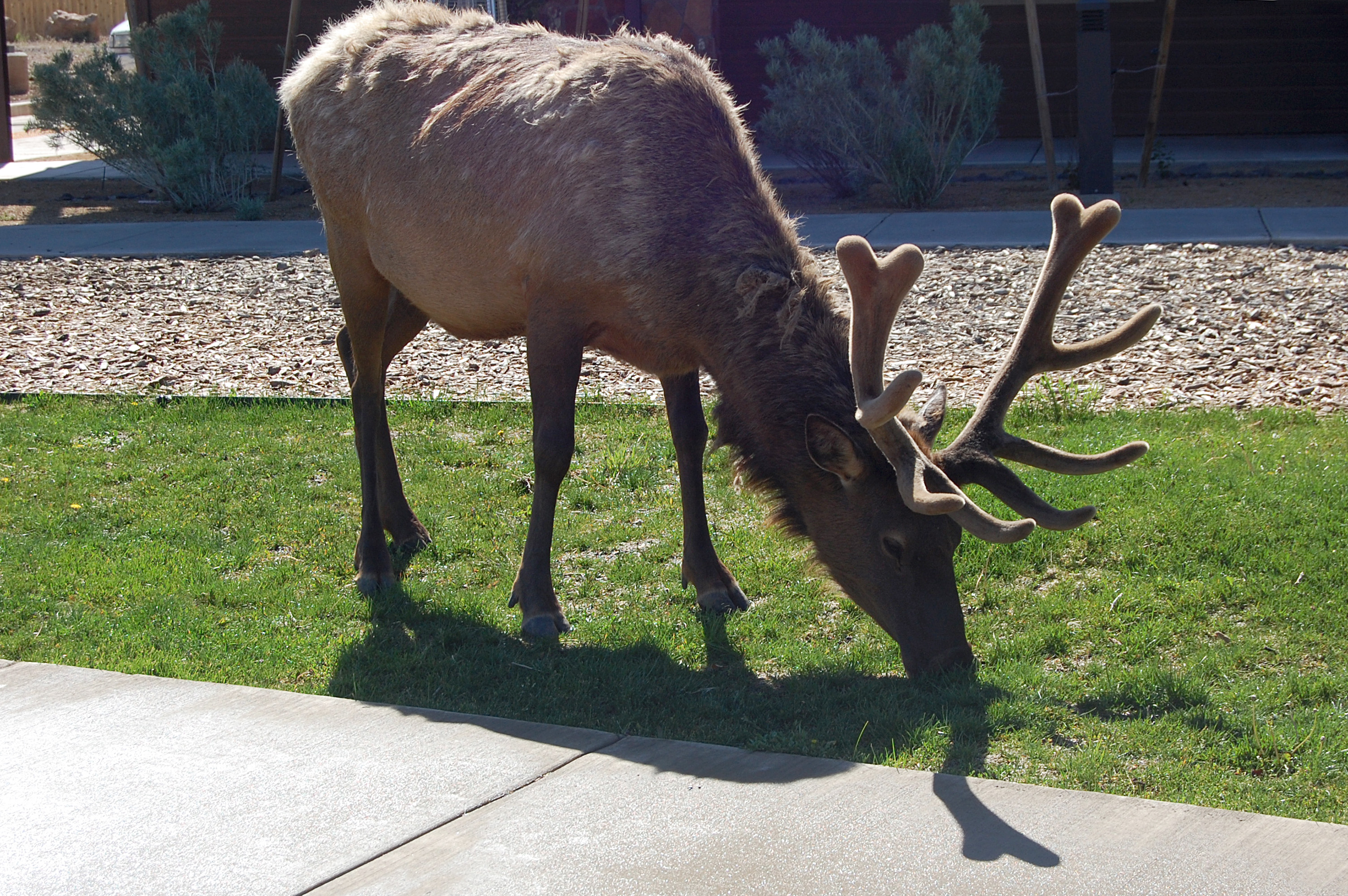 But to end on a lighter note, and because the last part of this entry has been disappointingly short on pictures, here’s one. It’s of the elk with whom I waited at the park and ride bus stop in Tusayan. Note to self, remember always to try to end on an animal story…