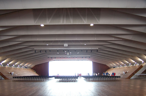 Here, extraordinary rooms with amazing details like folded metal roofs can be found. Indeed, the folds and slopes of the building are the secret to its construction. They transfer the forces diagonally within the building, and along with some cleverly hidden concrete girders, allow the creation of rooms that do not have visible pillars intruding into the internal spaces. According to several sources, the diagonal elements are also helpful in ensuring the building is proof against seismic activity.