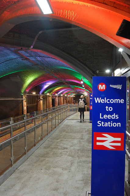 Leeds station is like the best sort of package, one that might not be all that alluring at first glance, but conceals glistering trinkets within. The station has several entrances, and this is the one you see if you arrive by bus.