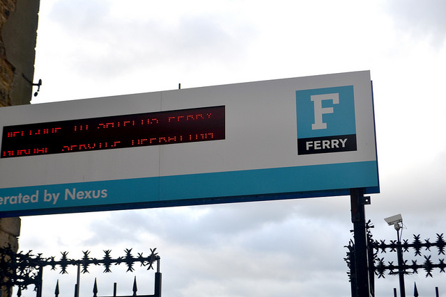 Once the idea of using Calvert initials for transport in Nexus’s area had proved itself on the Metro and bus networks, there was no stopping it. Next up was the Shields Ferry, gaining an F brandmark on a pale blue background. Disappointingly it’s not applied to the ferries themselves – I could really go for grey ferries with a blue F brandmark – but makes appearances on the Shields Ferry signage.