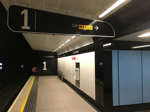 Oversize Calvert numerals at the end of the platforms are a nice touch, and even the tactile paving is black with silver bumps. After the colourful chaos of the early 2000s, the level of refinement in Gardiner Richardson’s revised visual identity is simply astonishing. You just don’t expect to see visual design this good on a British light rail system. The only additional colours to be found are in some decorative surfaces or artworks, and to be honest, I think they end up slightly distracting from the effect.