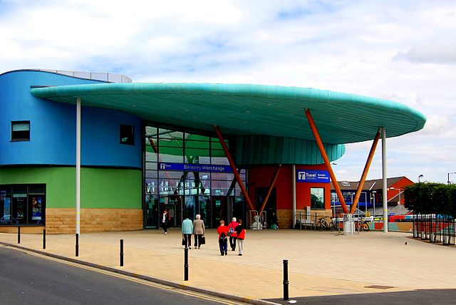 Buses sometimes get treated as the poor relation to train travel when it comes to public transport in Britain. Barnsley Interchange sends a message to railway users passing through the bus station about the quality to which local bus services can aspire.