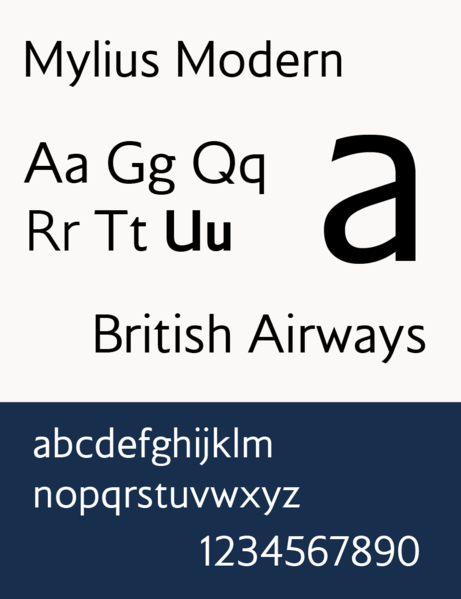 For British Airways, however, Newell and Sorrell went for something a lot brighter, and somewhat less formal. The corporate typeface was changed (to the “warmer, more human” (Holston, 2011) bespoke Mylius font drawn up by type designers Monotype)…