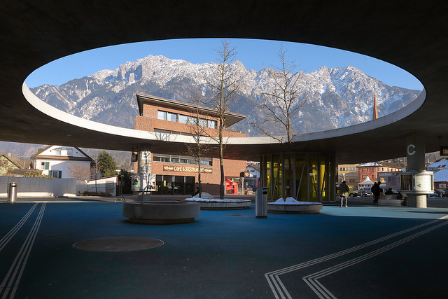 The new bus station was intended to act as the focal point for a wider remodelling of Schaan city centre. It’s certainly a successful landmark, and has been accompanied by redevelopment in the surrounding area. Along with traffic management measures and other public realm improvements, the centre of Schaan has now become more accessible to pedestrians and cyclists too.