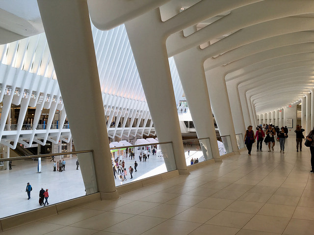 The cost of its construction is already being forgotten, as always tends to happen with expensive new buildings, and its merits are becoming more appreciated. You can practically feel the conflict coming off the New York Times‘ March 2016 review of the Oculus: “At first blush, Mr. Calatrava’s architecture can almost — almost — make you forget what an epic boondoggle the whole thing has been. That virgin view, standing inside the Oculus and gazing up, is a jaw-dropper.” It truly is. Like Grand Central, it is a draw in and of itself. People visiting or passing through stop to look and take photographs. Lower Manhattan has gained a worthy companion for the older terminal to the north, some compensation for the loss of Penn Station, and something which is wonderful on its own merits.