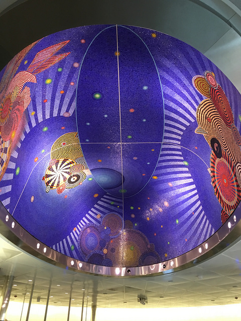 At one of the Subway’s newest stations, 34th Street-Hudson Yards, there is a huge mural in the ceiling of the below-ground concourse, and another over the escalators which lead down into it.