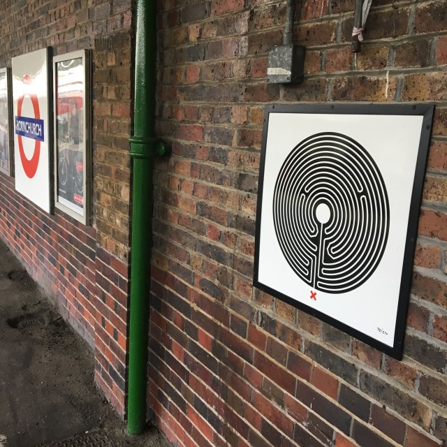 London Underground doesn’t make it easy for collectors though. Because there are always refurbishment works underway somewhere on the Underground, it seems, there are occasions when individual Labyrinth artworks are temporarily removed. Art on the Underground’s Labyrinth page keeps visitors up to date with the current situation. At the moment, the Labyrinths at Barbican, Bromley on Bow, Charing Cross, Moorgate and West Acton are not on display.
