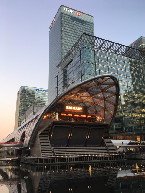It is one of a couple of sci-fi touches at Crossrail Place; it feels like it should be the jetway for a Fireflash aircraft. Meanwhile, the enormous rectangular grilles at each end of the building, which mark the end of the ventilation shafts for Crossrail below, would fit neatly into any Blade Runner-esque megacity techno-dystopia. Canary Wharf as a whole has always had a slight air of unreality about it in any case, this merely adds to it.