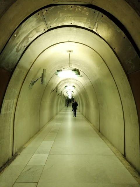 The first line, the RER A, opened in stages between 1969 and 1977 and was immediately wildly popular, reaching 300 million journeys per year by 2011. Several of the stations on this line have been called “cathedral stations”: cavernous underground halls on a scale Paris had never seen (and few places have still). The largest of these is Auber, whose huge underground space, 30m below the surface, comprises three levels: the train lines and platforms, a spacious concourse, and a mezzanine with ticket offices.