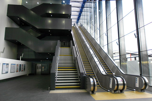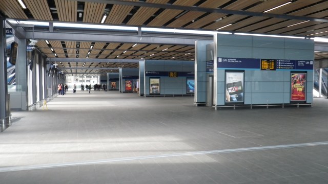 Unfortunately the new addition is a good example of style over substance. Being solid concrete with entrances open to the elements and no heating, the entire new footbridge is absolutely frigid in cold weather. The escalators may dramatically descend to the platforms, but the swept up canopies mean that all the adjacent platform sections now have zero weather protection, with large effective gaps in the canopies. Unfortunately, everyone gets so dazzled by the dramatic design that they fail to consider the most essential needs of travellers.