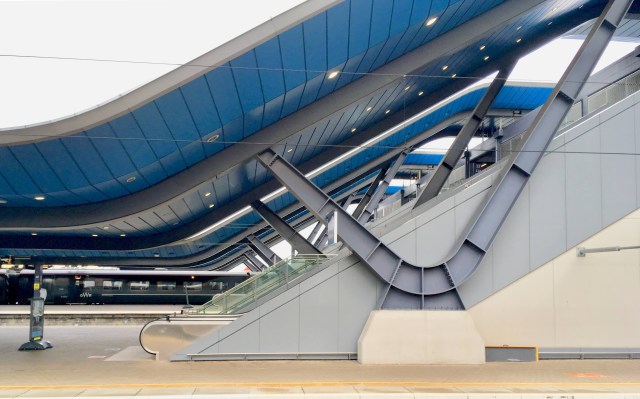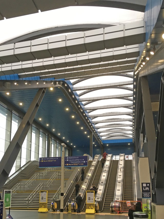 The new London Bridge station is also marred by platform canopies with wavy parts that reduce protection from the elements for waiting passengers. Unlike Reading though, there is not even a technical justification for them; they are just there for style. The predominantly level parts of the canopies seem unduly high anyway, and the edges are also set well back from the platform edges. Given that the platforms are at high level, passengers are therefore often exposed to driving rain, and cold in the winter, so the canopies really spoil what is otherwise a now splendid station. For such a busy and elevated station I think it should definitely have had an overall roof over all the platforms – in a similar manner to say Waterloo.