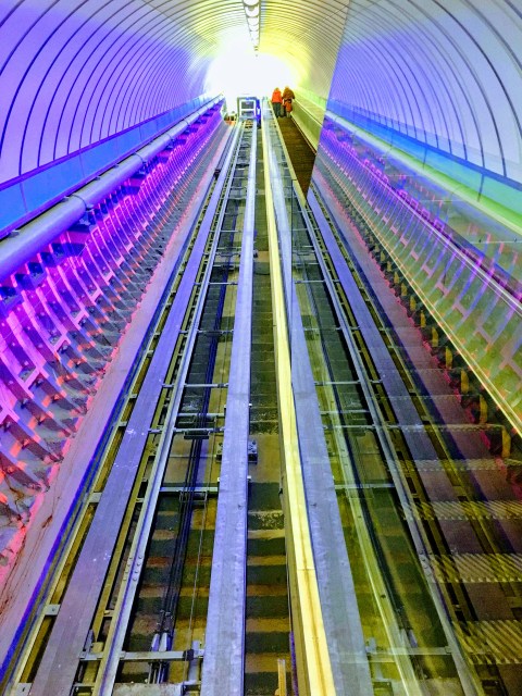 Recently refurbished and brought back to its original splendour, if not exactly its original design, the Tyne Pedestrian and Cyclist Tunnels is not only a very useful piece of transport infrastructure, but a very attractive one. It shares similar design concepts with the Greenwich and Woolwich Foot Tunnels, but 50 years later, fashions and technology had changed, and the Tyne’s tunnel exudes a more modern style by the bucketload.