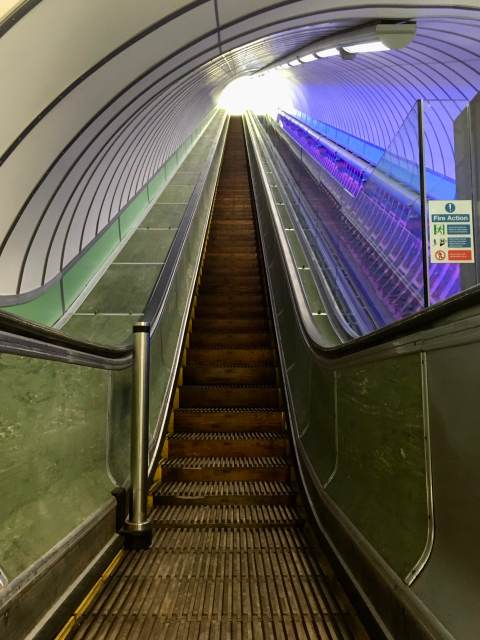 Although users can walk up or down the escalators (I have done, and going up is a bit steep), if you have a bike, a pushchair, or don’t want to walk the steps, there is now a choice of two different lifts to get from the surface to the tunnel and back up again. The vertical lifts are being retained, but as they are smaller than the inclined lifts, it is expected that most people will use the latter.