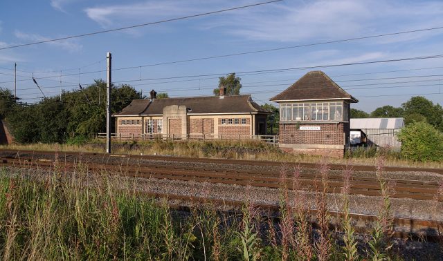 But that wasn’t the end of Darling’s work. He also designed a matching signal box for Otterington. Located on the platform right next to the station building, it had the expected run of glazing all the way across the trackside elevation and two-thirds of the way down its ends. The signal box and station building were on the ‘up’ (southbound) platform.