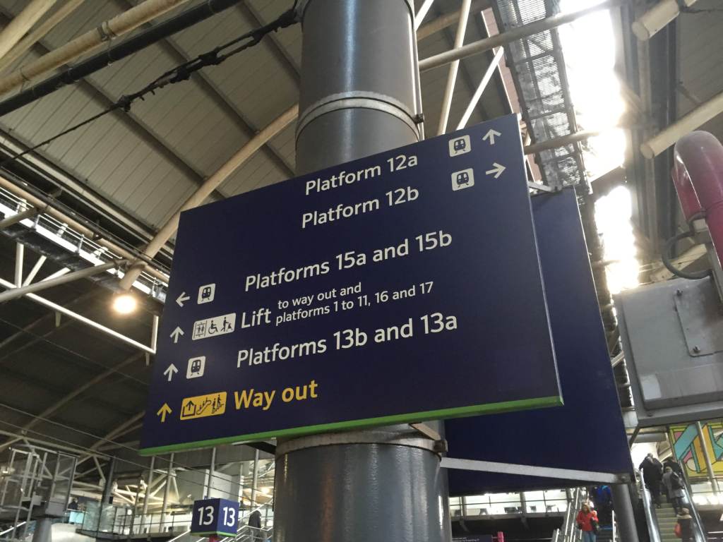The next issue to tackle was selecting the most effective colour for the new wayfinding signage. I am constantly surprised by the lack of agreement in the privatised railway as to whether dark text on light backgrounds is best for signage (like British Rail’s black Rail Alphabet on white signs), or whether light text on darker backgrounds (like the British Railways Gill Sans totems or Railtrack’s blue signs) is easier to read.