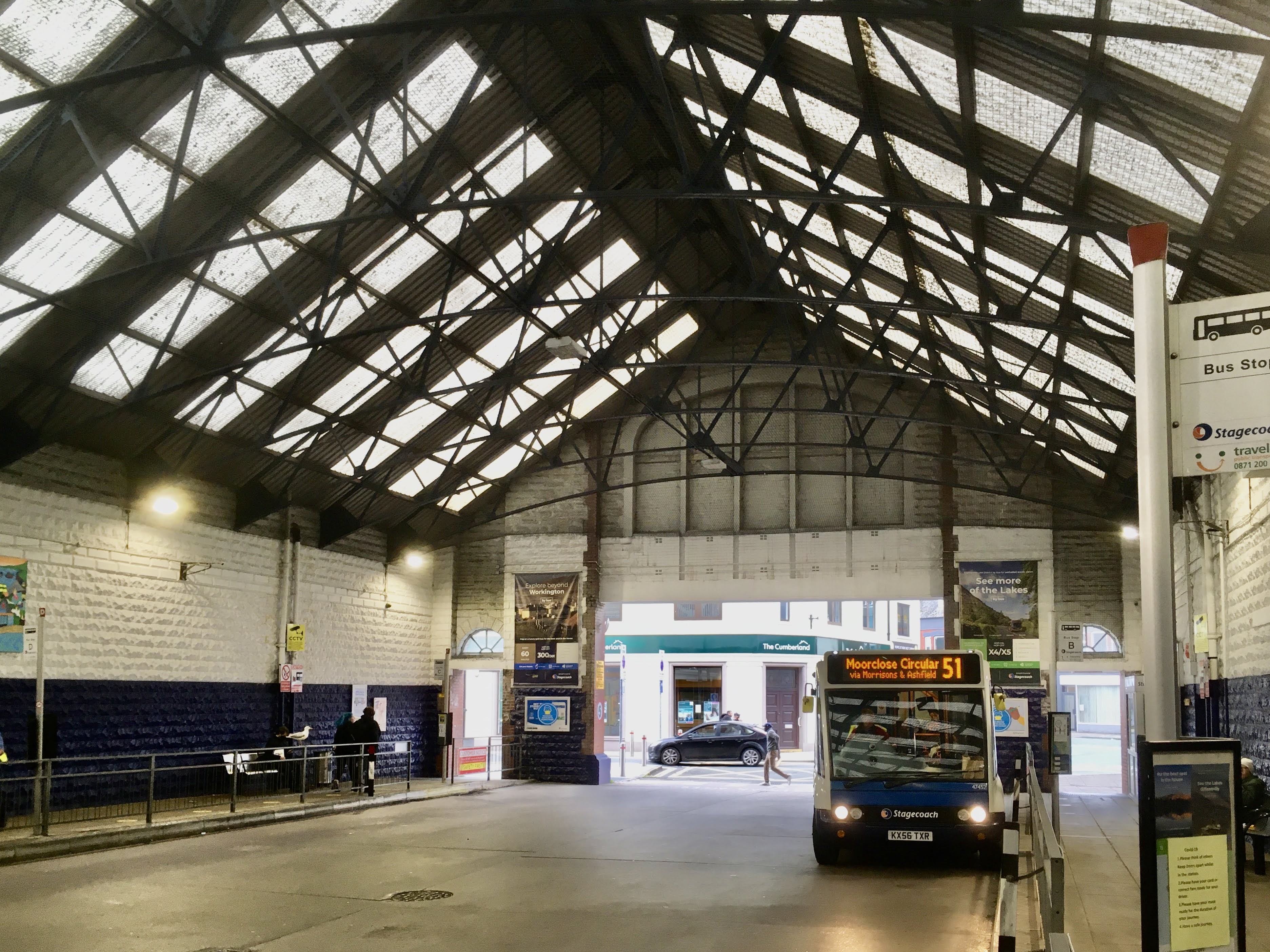 Sometimes you seek out transport architecture, at others transport architecture is thrust upon you, just as it was when I accidentally ended up in Workington a couple of months ago. With poor weather forecast on one of the days of a trip to the Lake District, I spent the day hopping buses on what turned into grand tour, and caught Stagecoach’s X4/X5 service from Penrith to Workington.