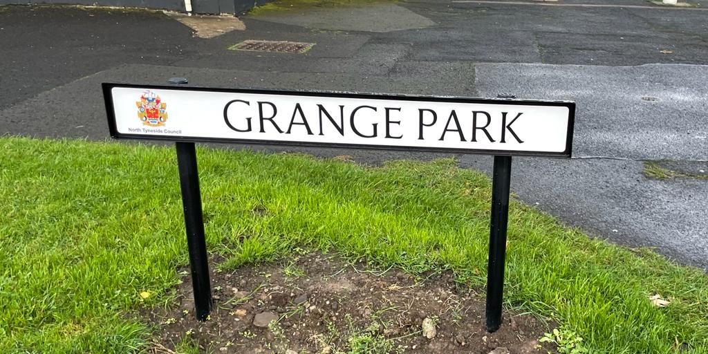 Bracknell Forest Council’s guidelines specify Kindersley MOT but also want reflective backgrounds to the name signs in rural areas, and non-reflective backgrounds in urban areas. Several local authorities specify the inclusion of their crest on street name signs (which seems like visual overkill to me, but then again maybe they are the kind of places where residents derive satisfaction from living there, and such signage reinforces their happiness). Here is one in North Tyneside: