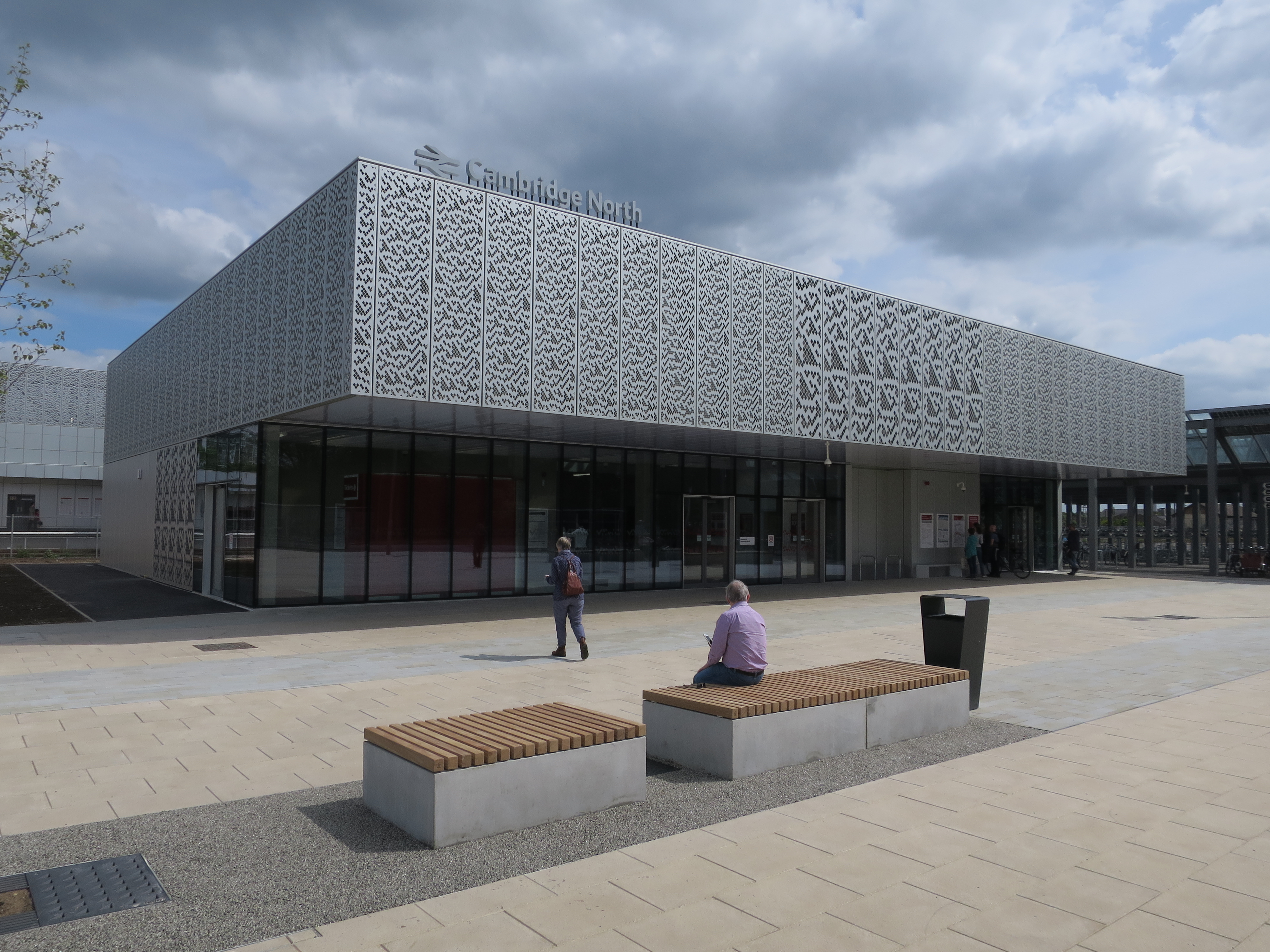 Thanks to a car-free plaza in front of the station (would that all stations had the same) it is possible to properly see the station in context, instead of obscured by serried ranks of tank-like SUVs. Sustainable transport connections are the key here instead. As well as easy interchange with the Cambridge Guided Busway, there is an enormous covered cycle parking facility next to the station. This is Cambridge, after all.