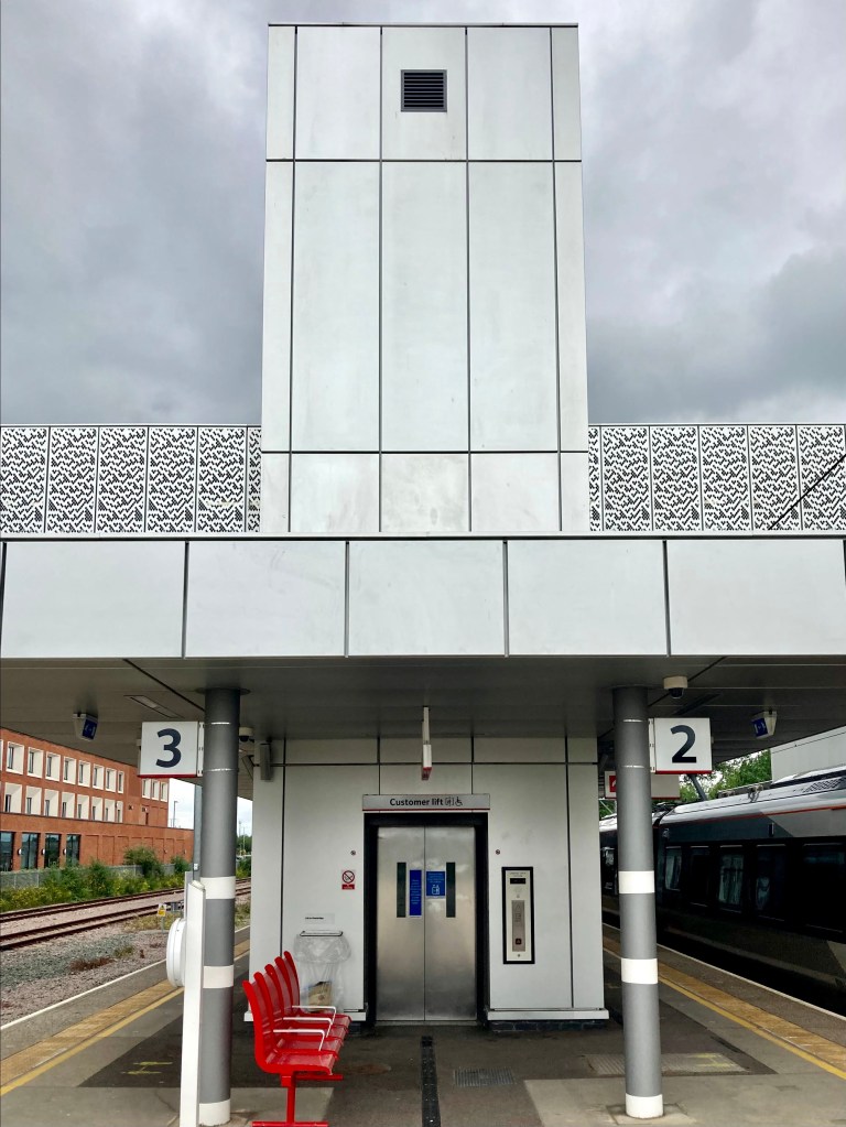 Despite the teething troubles getting it built in the first place, the station that opened in May 2017 was (and is) a thing of quite startling beauty. Clad in three bands of mostly aluminium panels, the exterior appearance of the station is remarkably consistent across its various elements, tying together the station’s main building, footbridge and platform buildings into a single unified structure. It’s the sort of approach you normally find in design competitions rather than actually built for real.