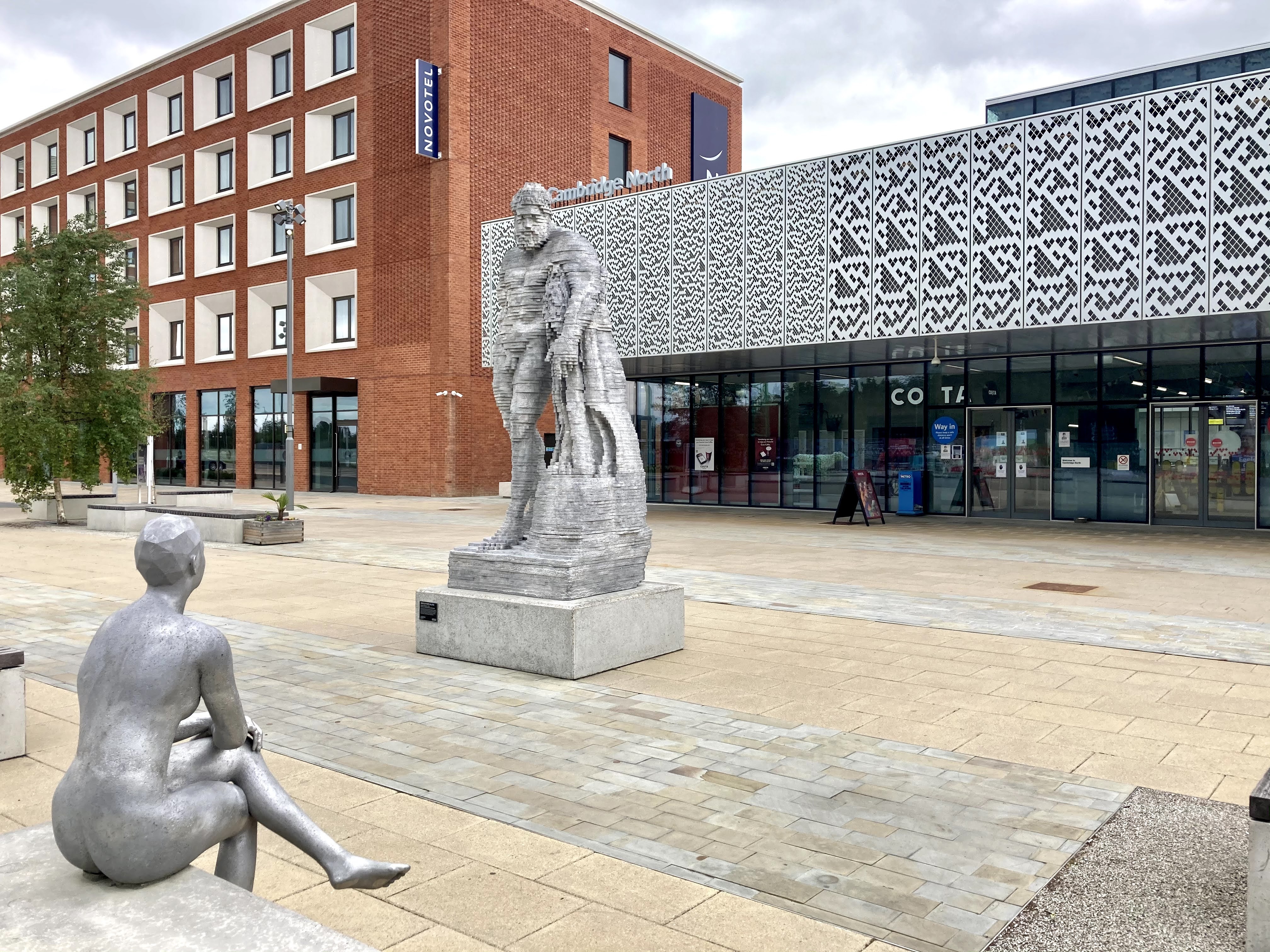 In a humanising (or perhaps superhumanising) touch, the station gained some public art in 2021. Artist Matthew Darbyshire’s “Hercules Meets Galatea” challenges the conventional story by depicting Galatea as youthful and powerful, while Hercules is old and blocky. Like the station’s cladding panels, they are both cast in aluminium.