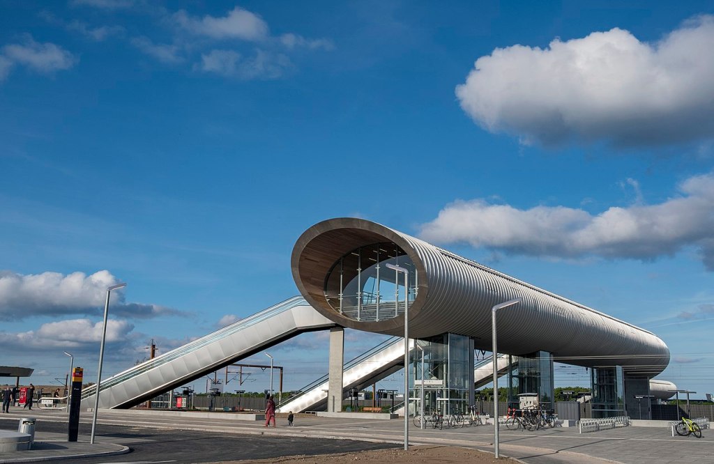 So you can imagine my surprise to find that Køge Nord station, which opened in 2019, has a footbridge which includes all of those things in real life.