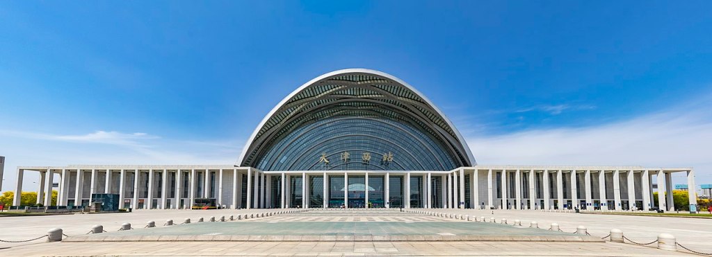 Tianjin West’s new station was built as part of the Beijing to Shanghai high speed line project. In just three years, from 2008-11, 819 miles of line were constructed to link the two cities. Tianjin West is actually just off the main line on a short spur; it is one of the northern termini of the line along with Beijing itself. The line was designed to support trains running at 217mph/350kph, and although it took until 2017 for 217mph services to run regularly, the journey between Beijing and Shanghai now takes about 4 hours 20 minutes.